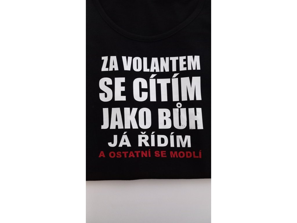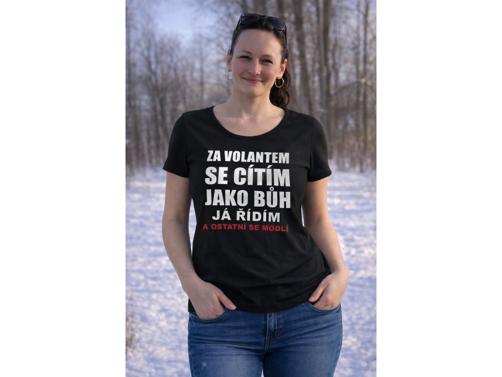 DÁMSKÉ TRIČKO - ZA VOLANTEM SE CÍTÍM JAKO BŮH JÁ ŘÍDÍM A OSTATNÍ SE MODLÍ