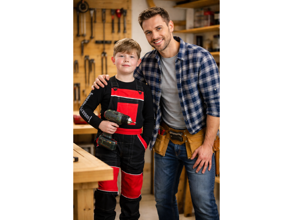 Laclové kalhoty umožňují nejmenším stát se opravdovým malým montérem, technikem, opravářem, kutilem, zahradníkem či tátovým nebo dědovým pomocníkem. Představují plně funkční zmenšeninu skutečných montérek pro starší.