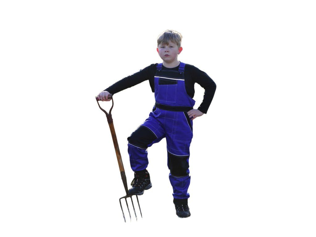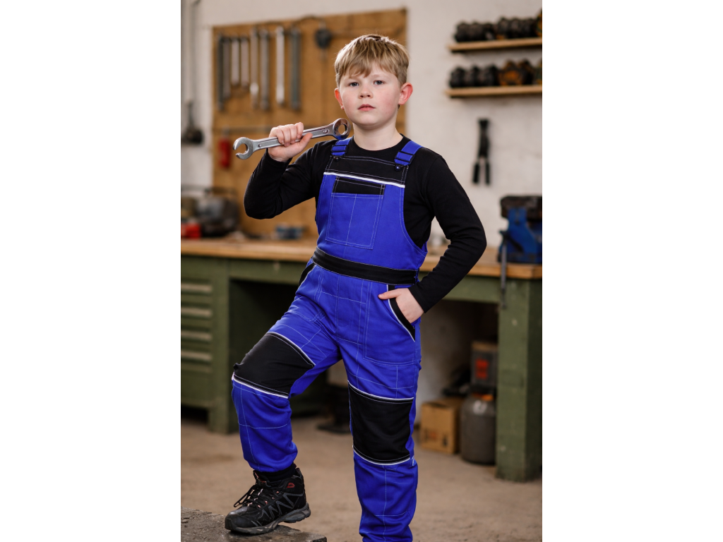 Dětské montérkové kalhoty s laclem KRTEX PROFIDUO modro-černé