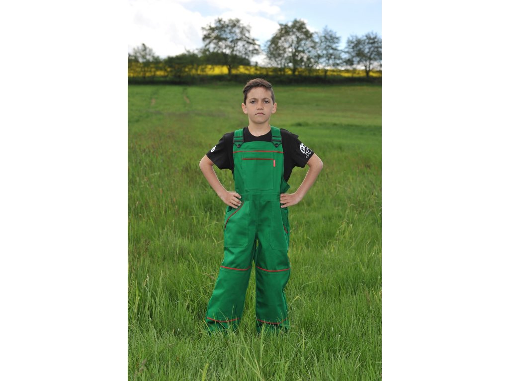 Dětské montérkové kalhoty s laclem RETRO zelené